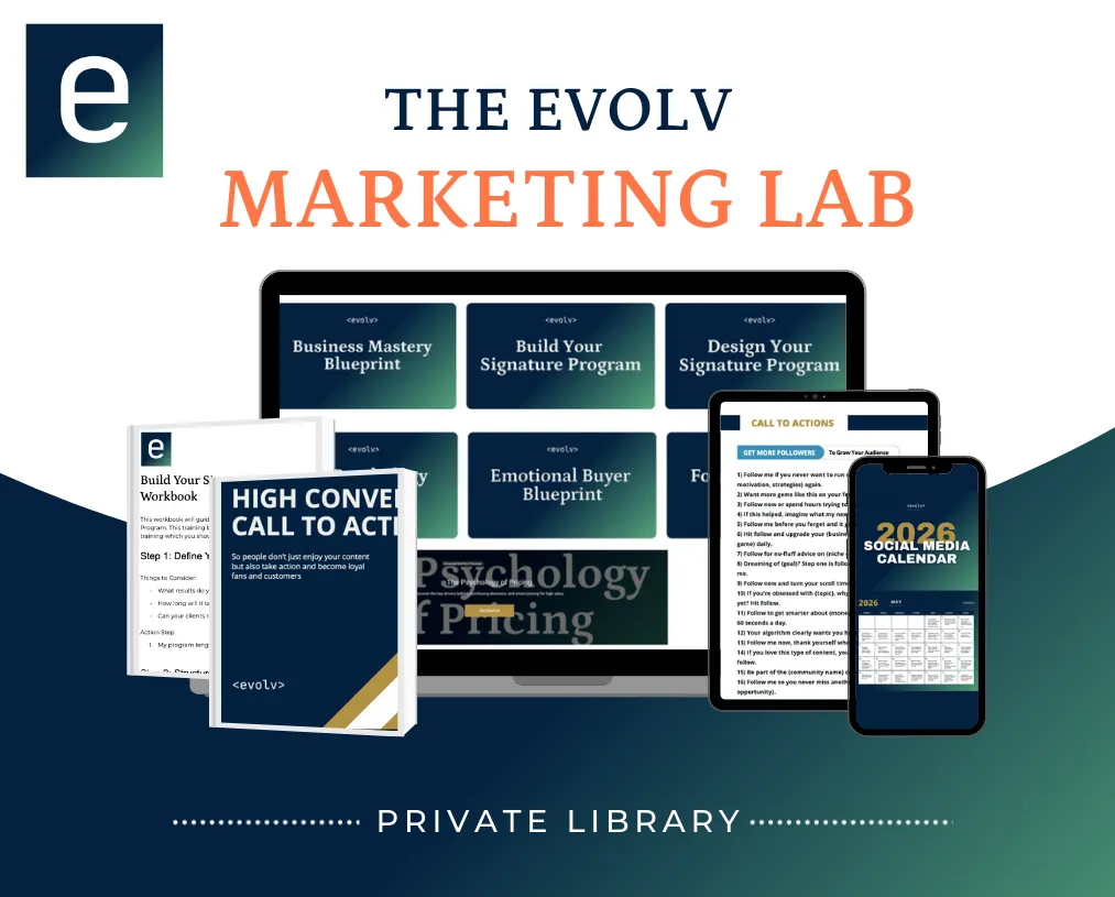 Access to the Evolv Marketing Lab + Social Media Lab (templates, trainings, swipe files).